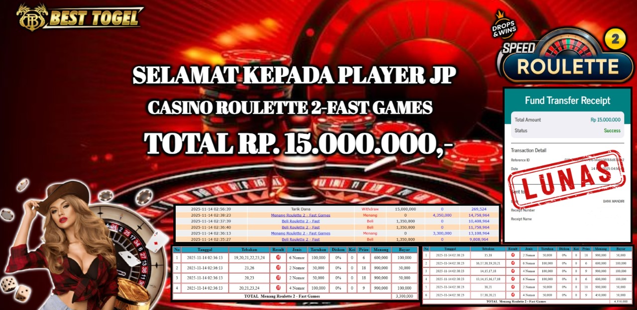 BUKTI JACKPOT CASINO ROULETTE 2 – FAST GAMES Rp. 15.000.000 ,- LUNAS