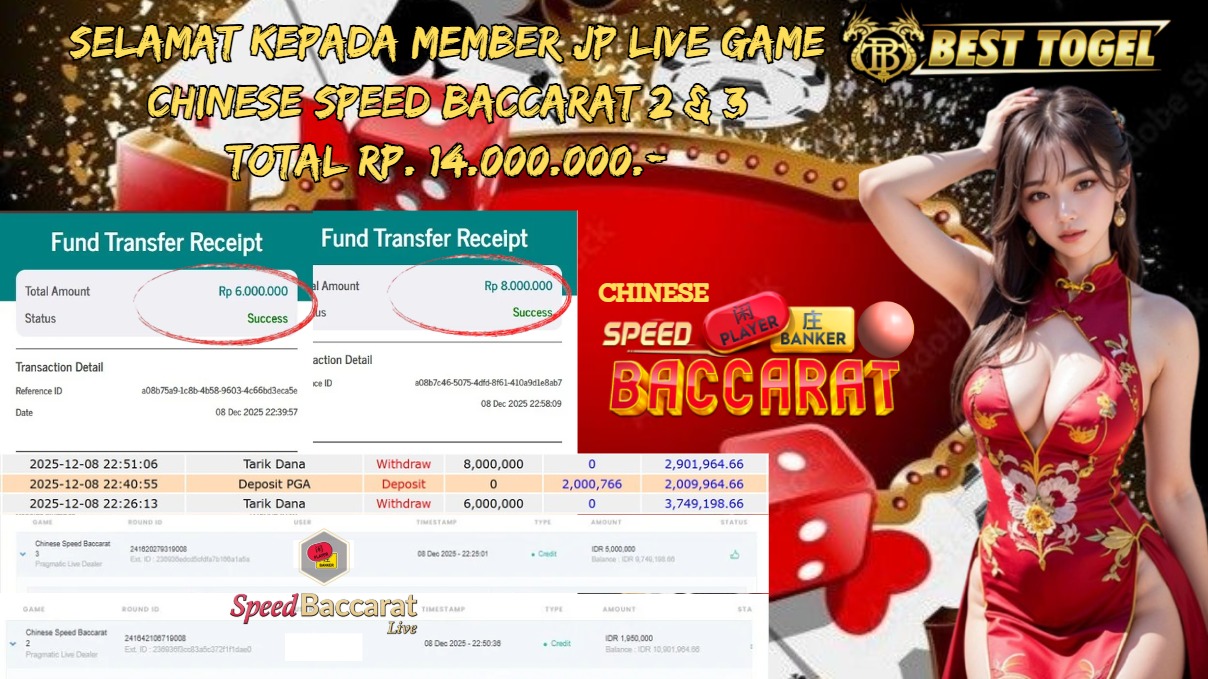 Selamat kepada User id : DOQ****** Telah berhasil mendapatkan kemenangan besar pada permainan LIVE GAME CHINESE SPEED BACCARAT 3 dengan total kemenangan Sebesar Rp. 14.000.000 ,- Setelah mengisi formulir withdraw dengan kurung waktu hanya 5 – 10 menit pihak BESTTOGEL sudah melakukan transfer kepada pemilik Userid dan dana sudah dapat di cairkan oleh pemenang. Bukti pembayaran yang kami berikan merupakan bukti pembayaran yang SAH / VALID yang langung di dapatkan melaui tanda transfer transaksi dari Bank yang di tuju.
