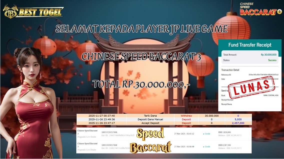 BUKTI JACKPOT LIVE GAME CHINESE SPEED BACCARAT 3 Rp.30.000.000,- LUNAS