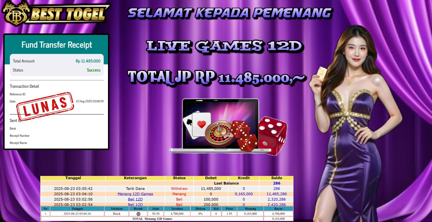 BUKTI JACKPOT LIVE GAMES 12D Rp. 11.485.000,00- LUNAS