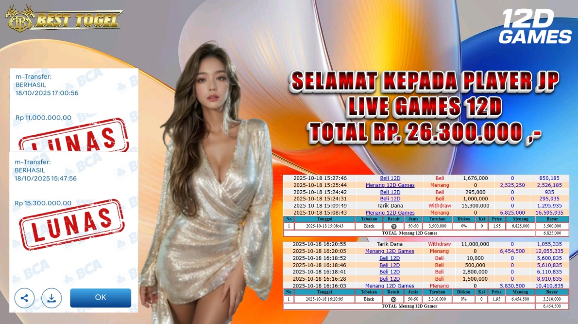 BUKTI JACKPOT LIVE GAMES 12D Rp. 26.300.000,- LUNAS