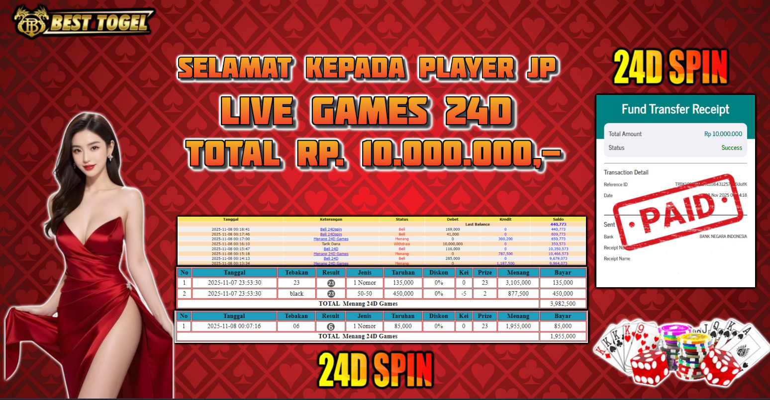 BUKTI JACKPOT LIVE GAMES 24D Rp. 10.000.000 ,- LUNAS