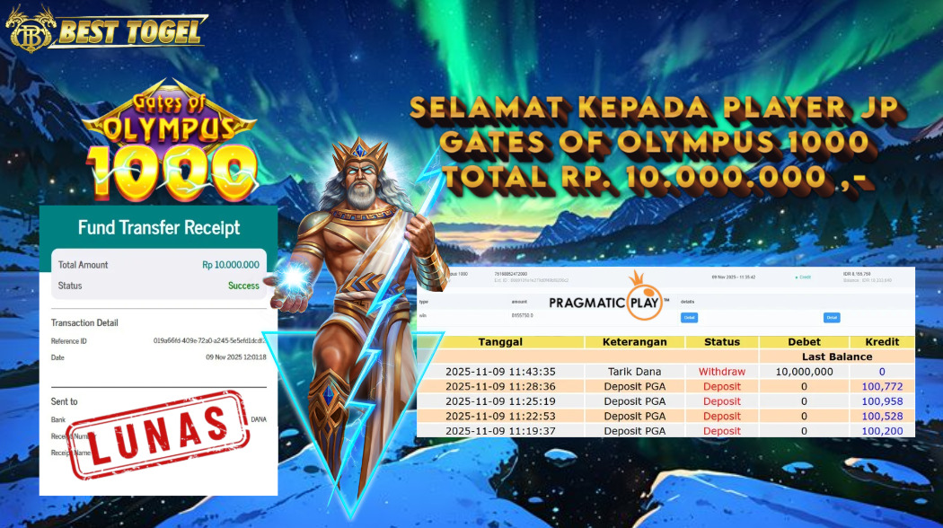 BUKTI JACKPOT SLOT GATES OF OLYMPUS 1000 Rp. 10.000.000 ,- LUNAS