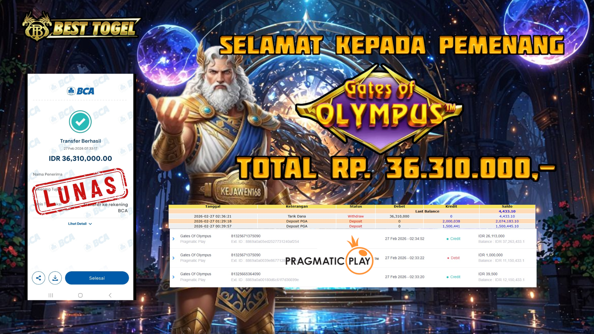 BUKTI JACKPOT SLOT GATES OF OLYMPUS RP. 36.310.000,- LUNAS