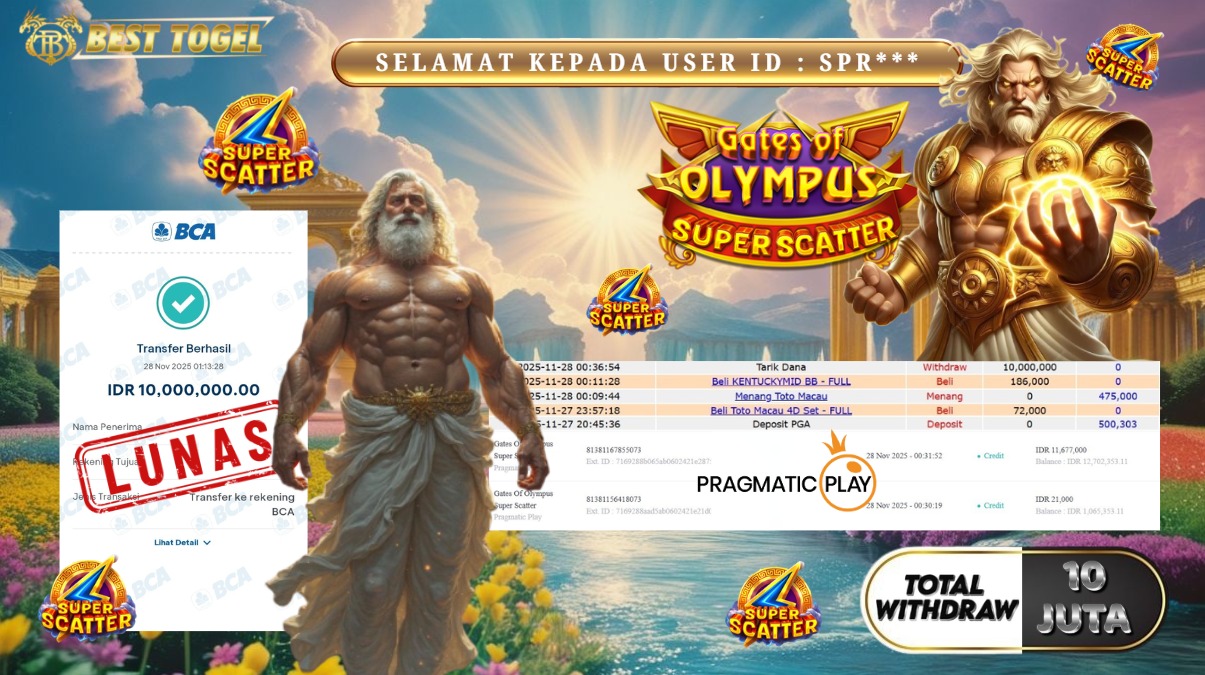 Selamat kepada User id : SPR****** Telah berhasil mendapatkan kemenangan besar pada permainan SLOT GATES OF OLYMPUS SUPER SCATTER dengan total kemenangan Sebesar Rp 10.000.000 ,- Setelah mengisi formulir withdraw dengan kurung waktu hanya 5 – 10 menit pihak BESTTOGEL sudah melakukan transfer kepada pemilik Userid dan dana sudah dapat di cairkan oleh pemenang. Bukti pembayaran yang kami berikan merupakan bukti pembayaran yang SAH / VALID yang langung di dapatkan melaui tanda transfer transaksi dari Bank yang di tuju.