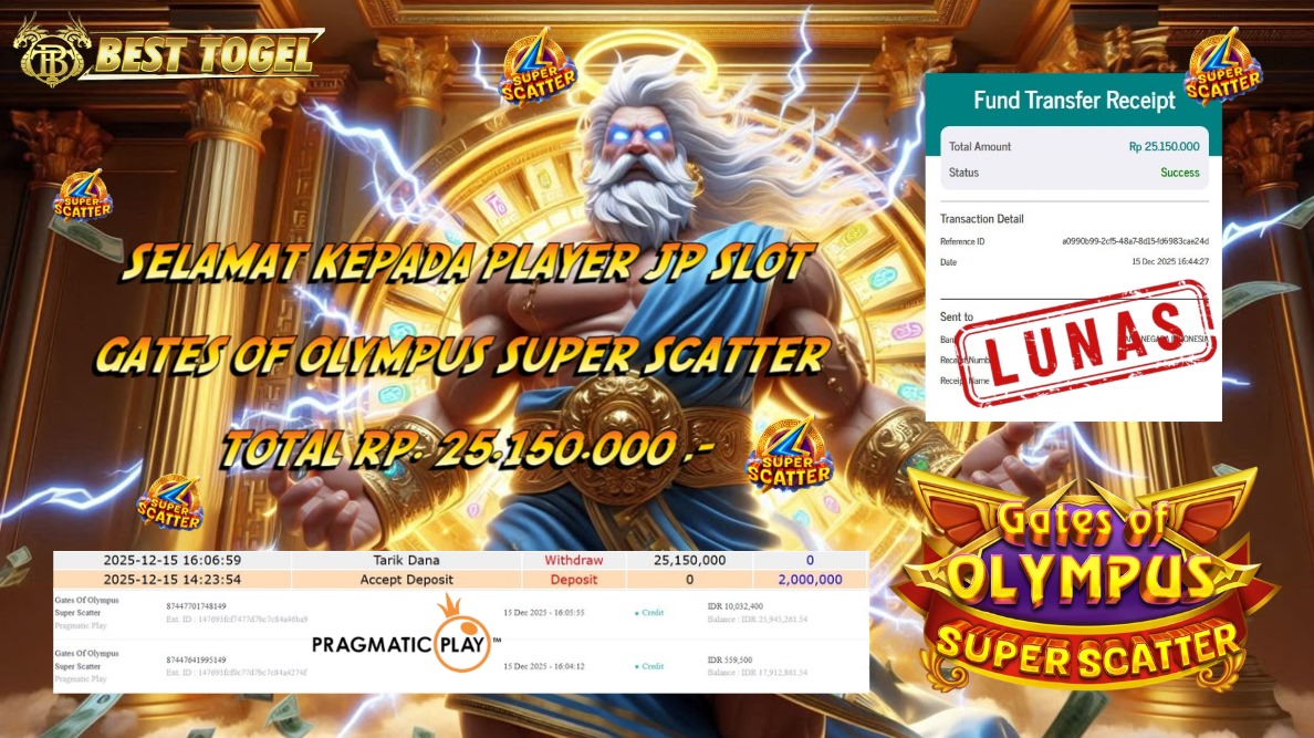 BUKTI JACKPOT SLOT GATES OF OLYMPUS SUPER SCATTER RP.25.150.000 ,- LUNAS