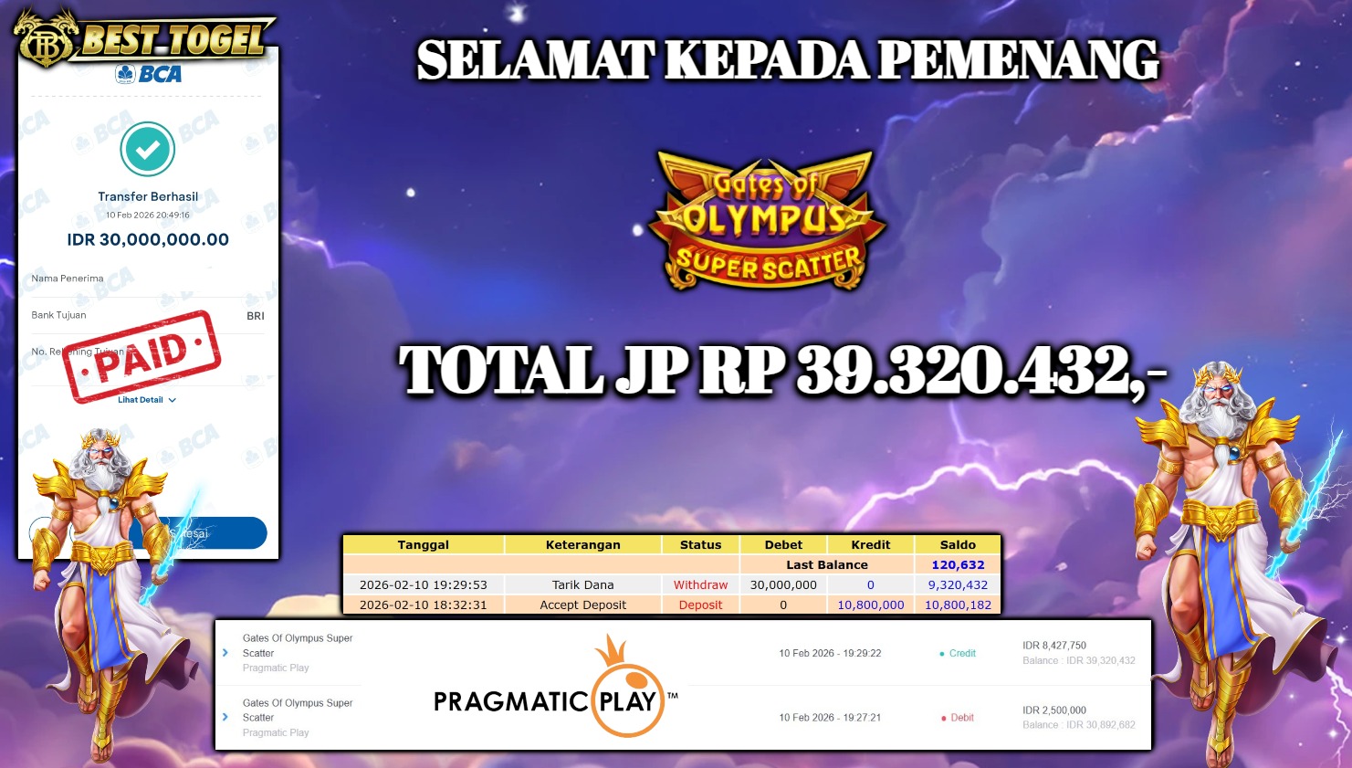 Selamat kepada User id : KAH****** Telah berhasil mendapatkan kemenangan besar pada permainan SLOT GATES OF OLYMPUS SUPER SCATTER dengan total kemenangan Sebesar Rp.39.320.432,– Setelah mengisi formulir withdraw dengan kurung waktu hanya 5 – 10 menit pihak BESTTOGEL sudah melakukan transfer kepada pemilik Userid dan dana sudah dapat di cairkan oleh pemenang. Bukti pembayaran yang kami berikan merupakan bukti pembayaran yang SAH / VALID yang langung di dapatkan melaui tanda transfer transaksi dari Bank yang di tuju.