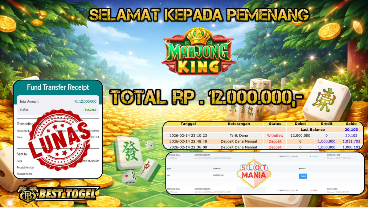 BUKTI JACKPOT SLOT MAHJONG KING RP.12.000.000,- LUNAS