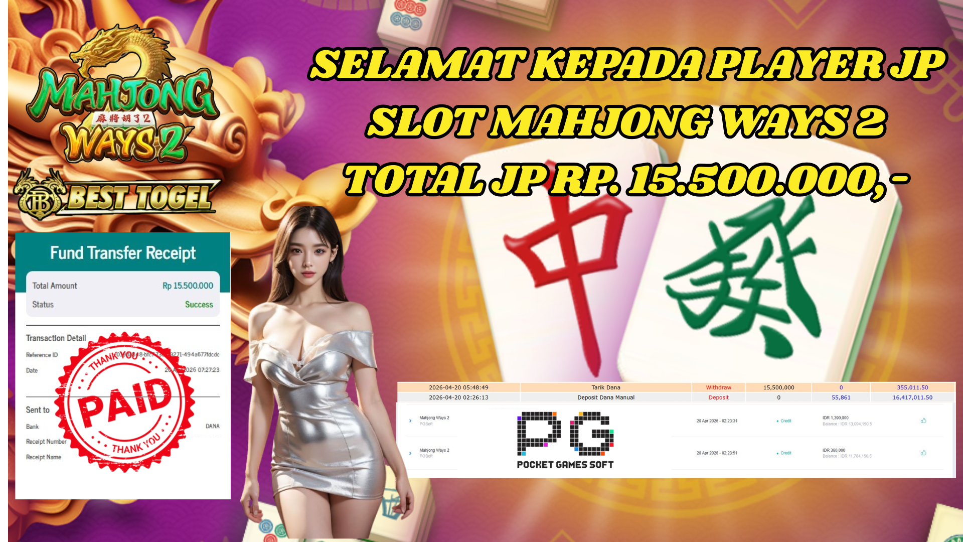 Selamat kepada User id : LEM*** Telah berhasil mendapatkan kemenangan besar pada permainanan SLOT MAHJONG WAYS 2 dengan total kemenangan Sebesar Rp. 15.500.000,- Setelah mengisi formulir withdraw dengan kurung waktu hanya 5 – 10 menit pihak BESTTOGEL sudah melakukan transfer kepada pemilik Userid dan dana sudah dapat di cairkan oleh pemenang. Bukti pembayaran yang kami berikan merupakan bukti pembayaran yang SAH / VALID yang langung di dapatkan melaui tanda transfer transaksi dari Bank yang di tuju.Kami mengucapakan banyak Terima Kasih Kepada pemenang karena sudah mempercayakan kami sebagai Bandar Tepercaya yang membayar semua kemenangan member