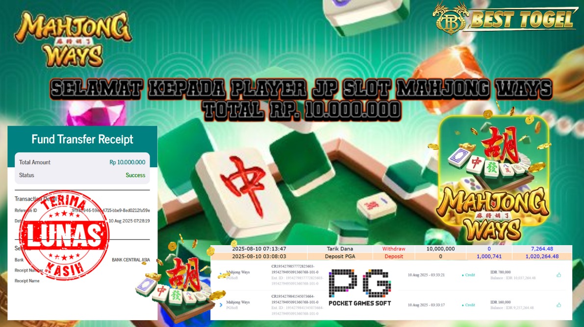 BUKTI JACKPOT SLOT MAHJONG WAYS Rp. 10.000.000,00- LUNAS