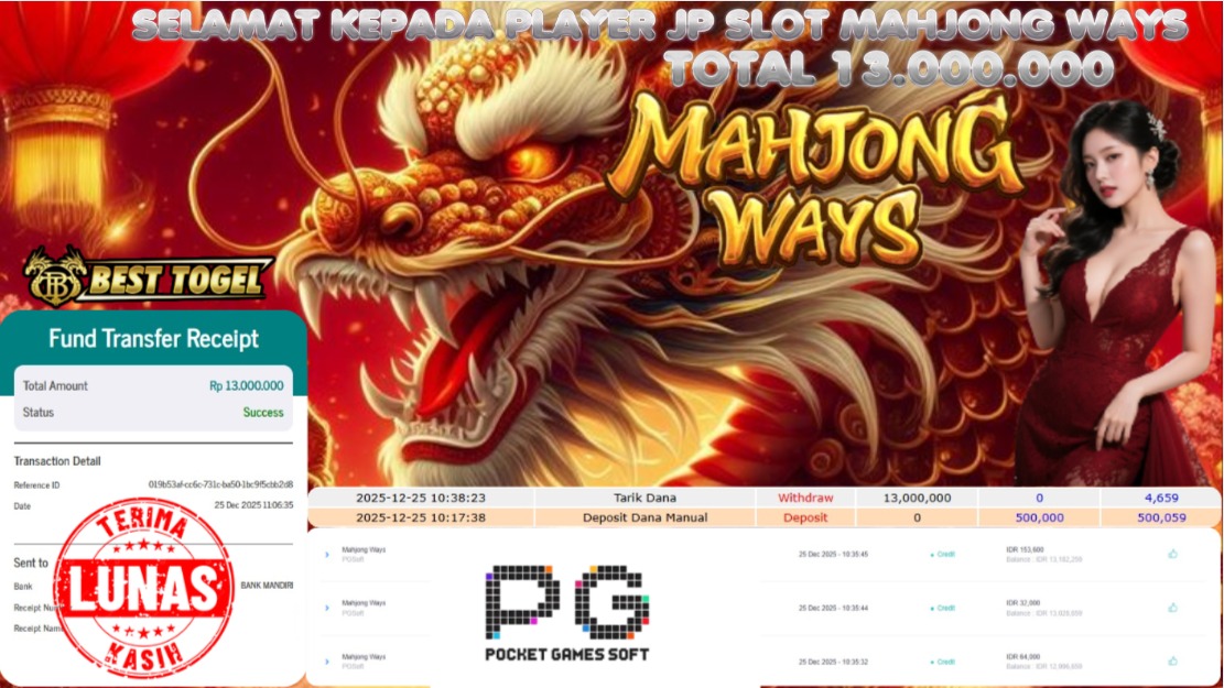 BUKTI JACKPOT SLOT MAHJONG WAYS RP.13.000.000,- LUNAS