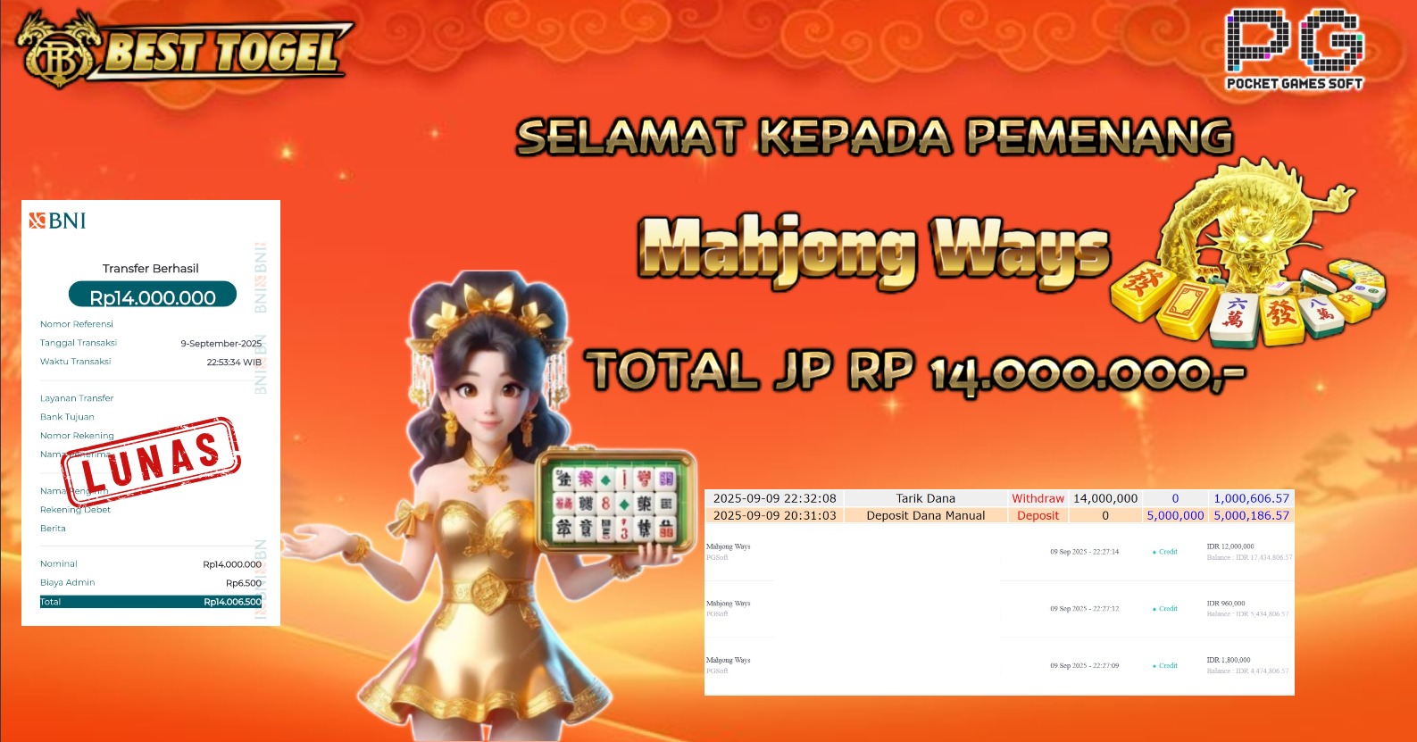 BUKTI JACKPOT SLOT MAHJONG WAYS Rp. 14.000.000,00- LUNAS