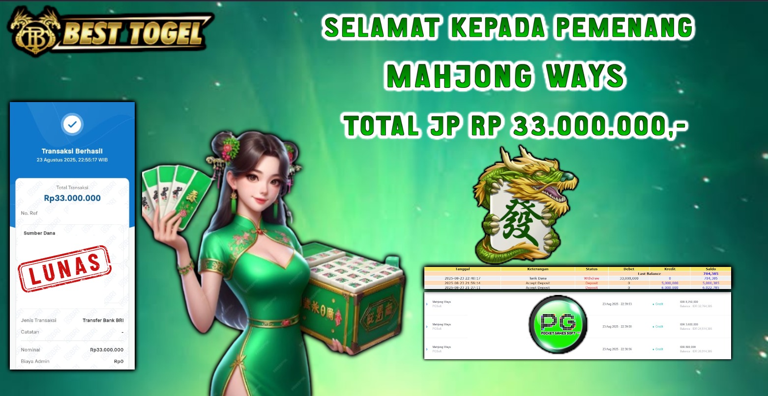 BUKTI JACKPOT SLOT MAHJONG WAYS Rp. 33.000.000,00- LUNAS