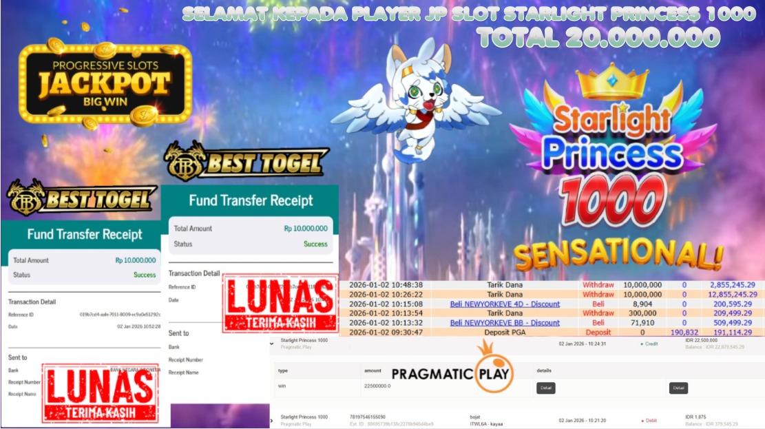 BUKTI JACKPOT SLOT STARLIGHT PRINCESS 1000 RP.20.000.000,- LUNAS