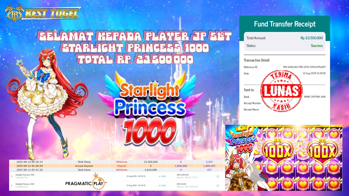 BUKTI JACKPOT SLOT STARLIGHT PRINCESS 1000 Rp. 23.500.000,00- LUNAS