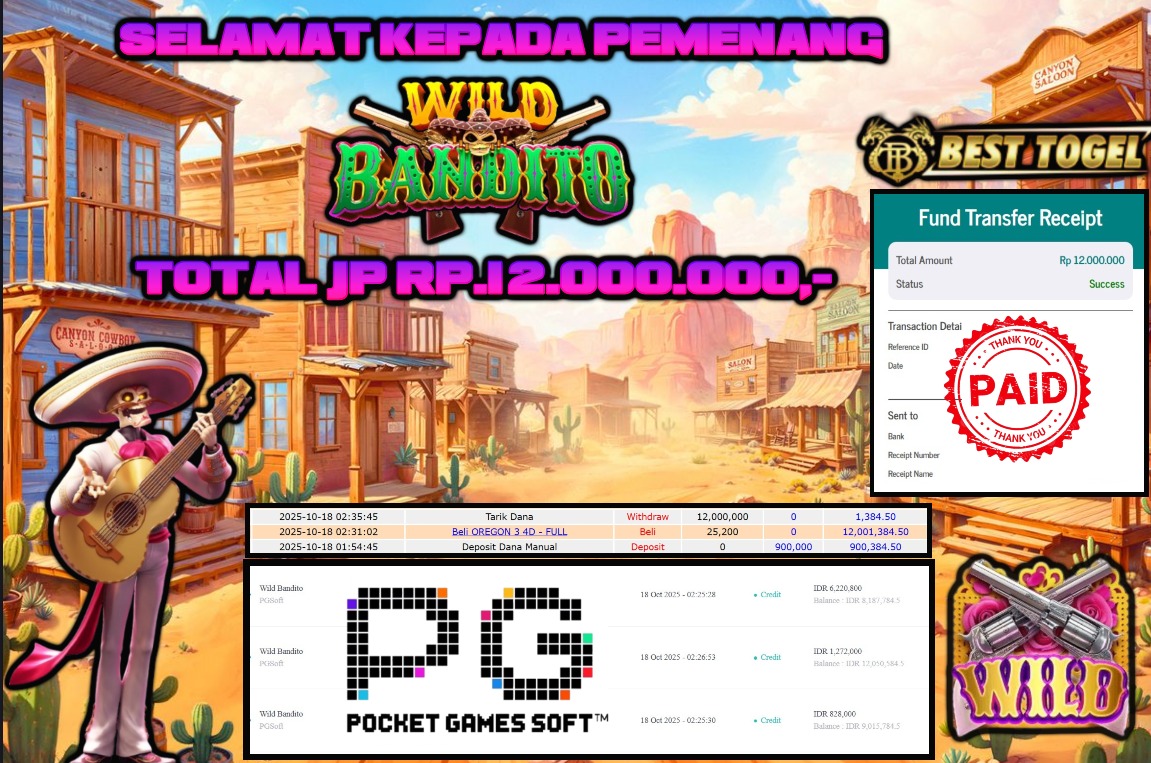 BUKTI JACKPOT SLOT WILD BANDITO Rp. 12.000.000,- LUNAS