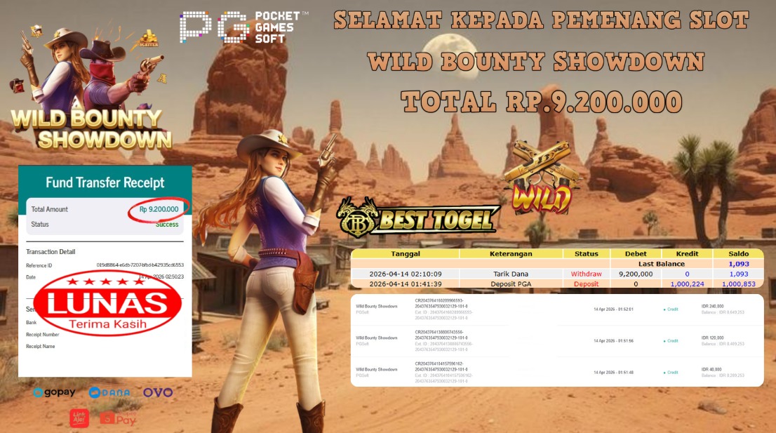 BUKTI JACKPOT SLOT WILD BOUNTY SHOWDON RP.9.200.000,- LUNAS