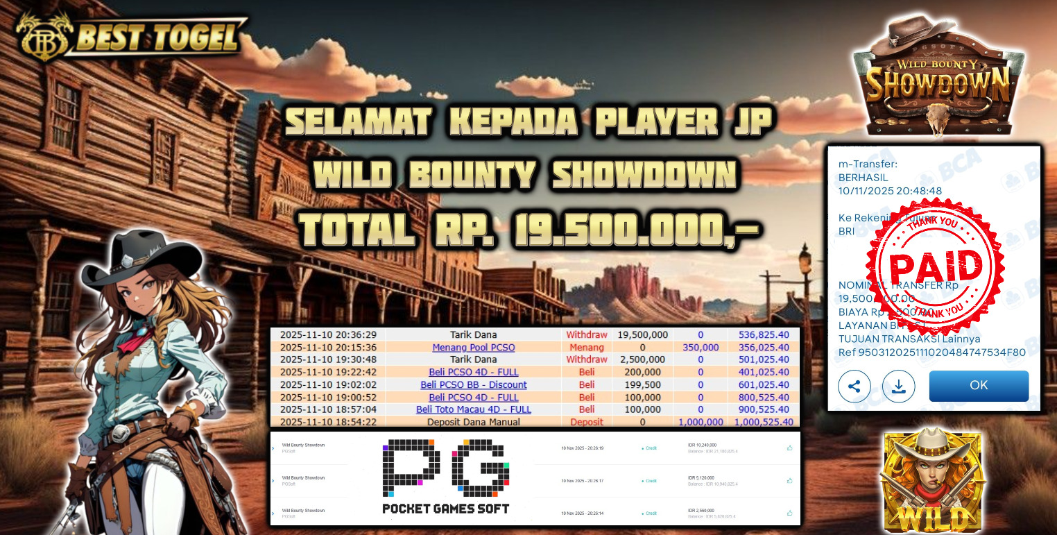 Selamat kepada User id : MHJ****** Telah berhasil mendapatkan kemenangan besar pada permainan SLOT WILD BOUNTY SHOWDOWN dengan total kemenangan Sebesar Rp 19.500.000 ,- Setelah mengisi formulir withdraw dengan kurung waktu hanya 5 – 10 menit pihak  BESTTOGEL sudah melakukan transfer kepada pemilik Userid dan dana sudah dapat di cairkan oleh pemenang. Bukti pembayaran yang kami berikan merupakan bukti pembayaran yang SAH / VALID yang langung di dapatkan melaui tanda transfer transaksi dari Bank yang di tuju.