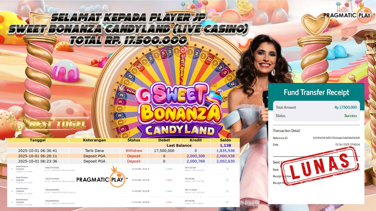 BUKTI JACKPOT SWEET BONANZA CANDYLAND (LIVE CASINO) Rp. 17.500.000,- LUNAS