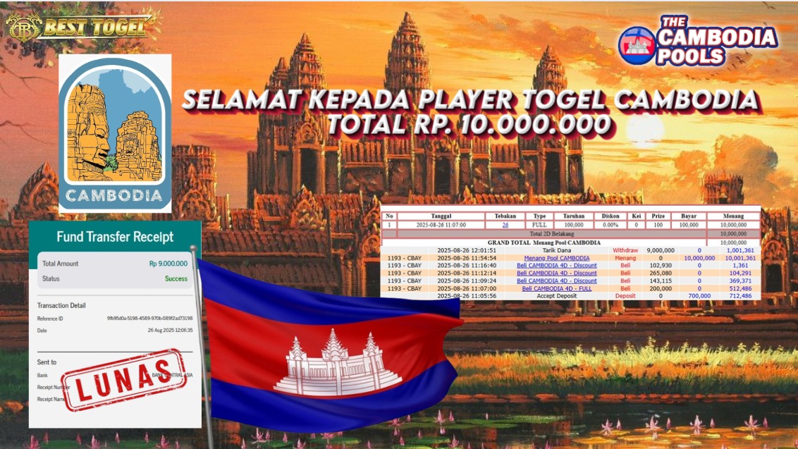 BUKTI JACKPOT TOGEL CAMBODIA Rp. 10.000.000,- LUNAS