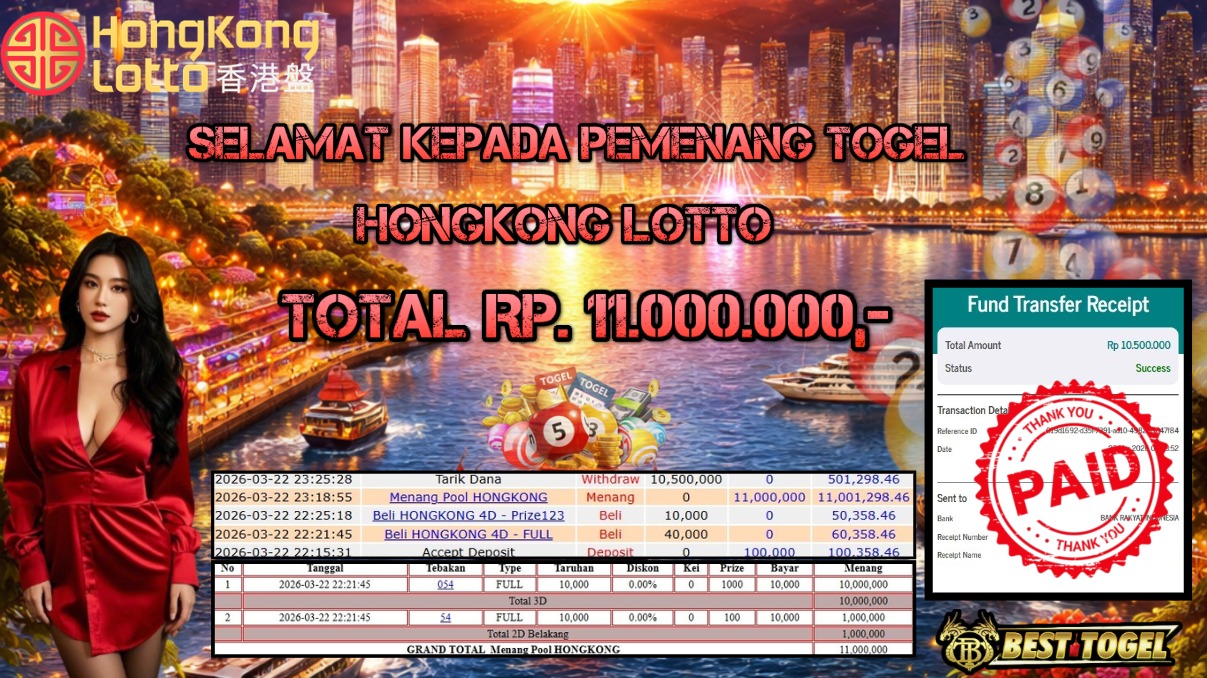 Selamat kepada User id : DGL****** Telah berhasil mendapatkan kemenangan besar pada permainan TOGEL HONGKONG LOTTO dengan total kemenangan Sebesar Rp.11.000.000,– Setelah mengisi formulir withdraw dengan kurung waktu hanya 5 – 10 menit pihak BESTTOGEL sudah melakukan transfer kepada pemilik Userid dan dana sudah dapat di cairkan oleh pemenang. Bukti pembayaran yang kami berikan merupakan bukti pembayaran yang SAH / VALID yang langung di dapatkan melaui tanda transfer transaksi dari Bank yang di tuju.