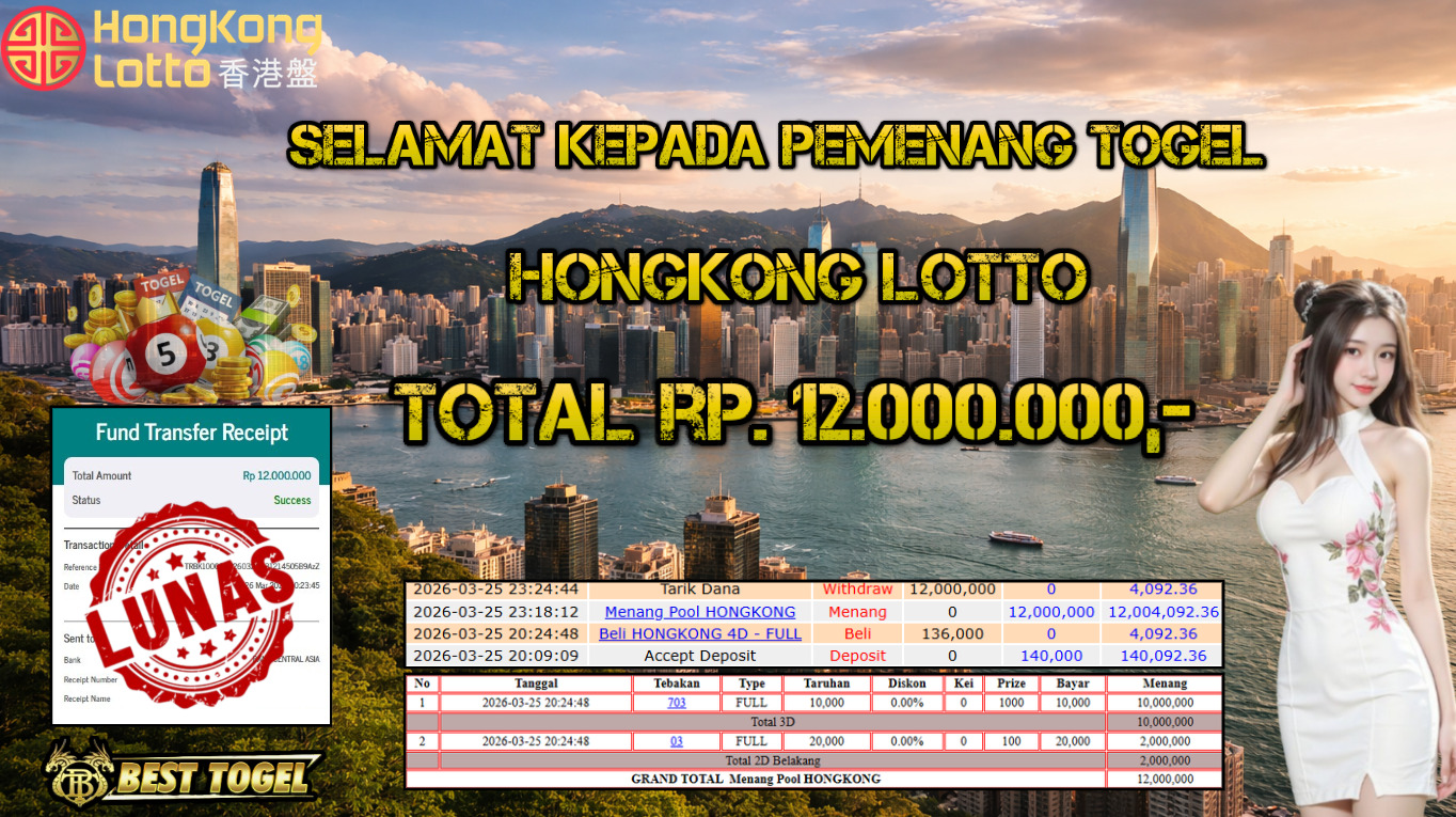 Selamat kepada User id : KAC****** Telah berhasil mendapatkan kemenangan besar pada permainan TOGEL HONGKONG LOTTO dengan total kemenangan Sebesar Rp.12.000.000,– Setelah mengisi formulir withdraw dengan kurung waktu hanya 5 – 10 menit pihak BESTTOGEL sudah melakukan transfer kepada pemilik Userid dan dana sudah dapat di cairkan oleh pemenang. Bukti pembayaran yang kami berikan merupakan bukti pembayaran yang SAH / VALID yang langung di dapatkan melaui tanda transfer transaksi dari Bank yang di tuju.