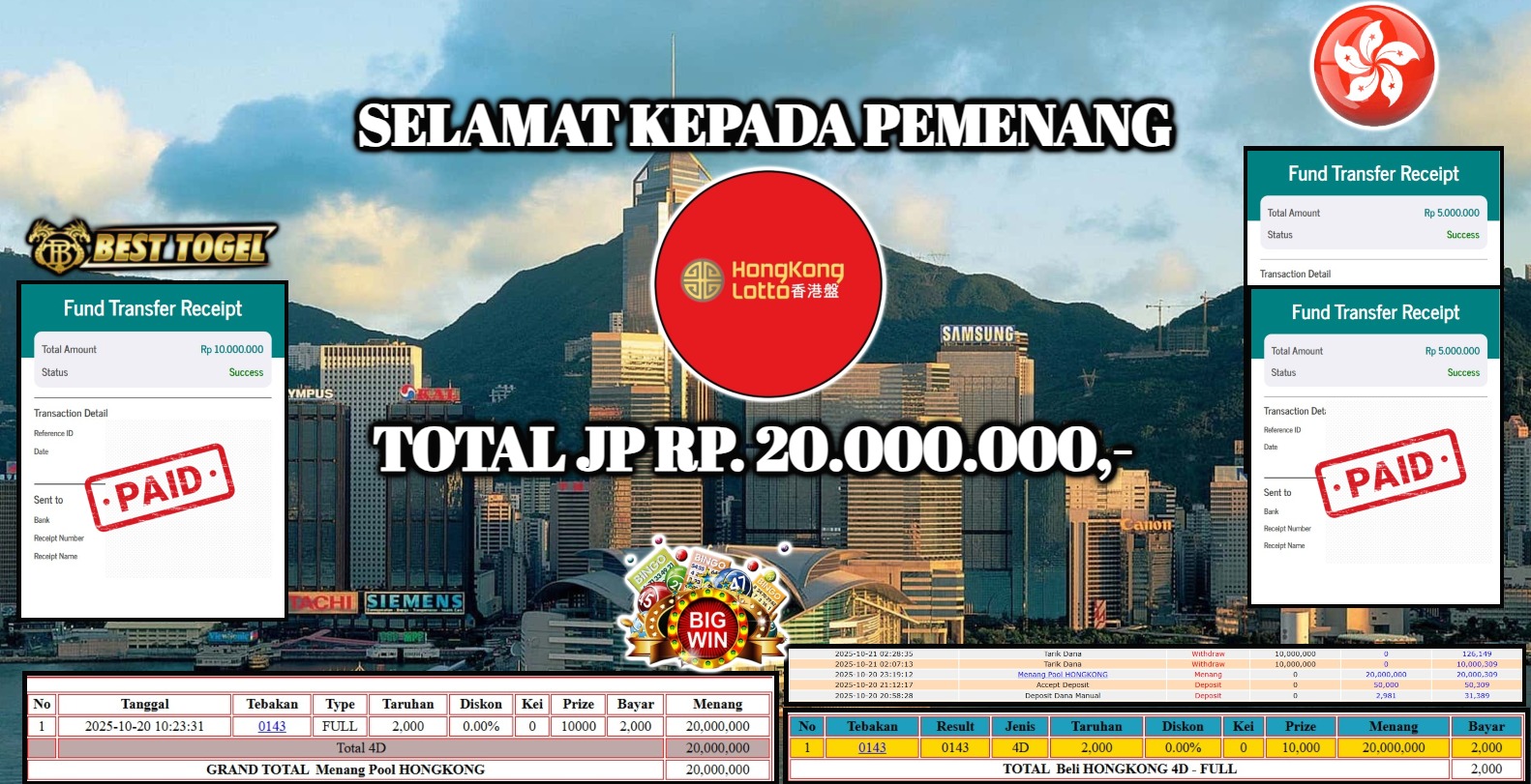 BUKTI JACKPOT TOGEL HONGKONG LOTTO Rp. 20.000.000,- LUNAS