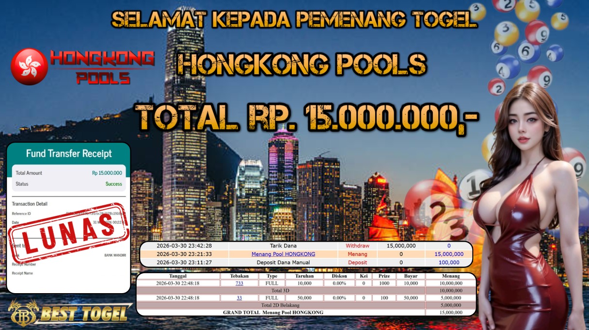 BUKTI JACKPOT TOGEL HONGKONG POOLS RP.15,000.000,- LUNAS