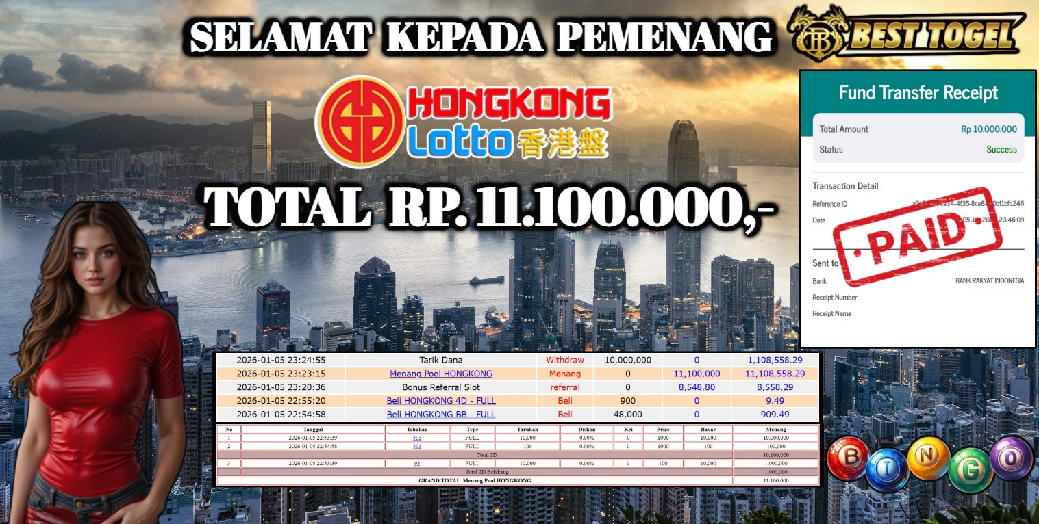 BUKTI JACKPOT TOGEL HONGKONG RP.11.100.000,- LUNAS