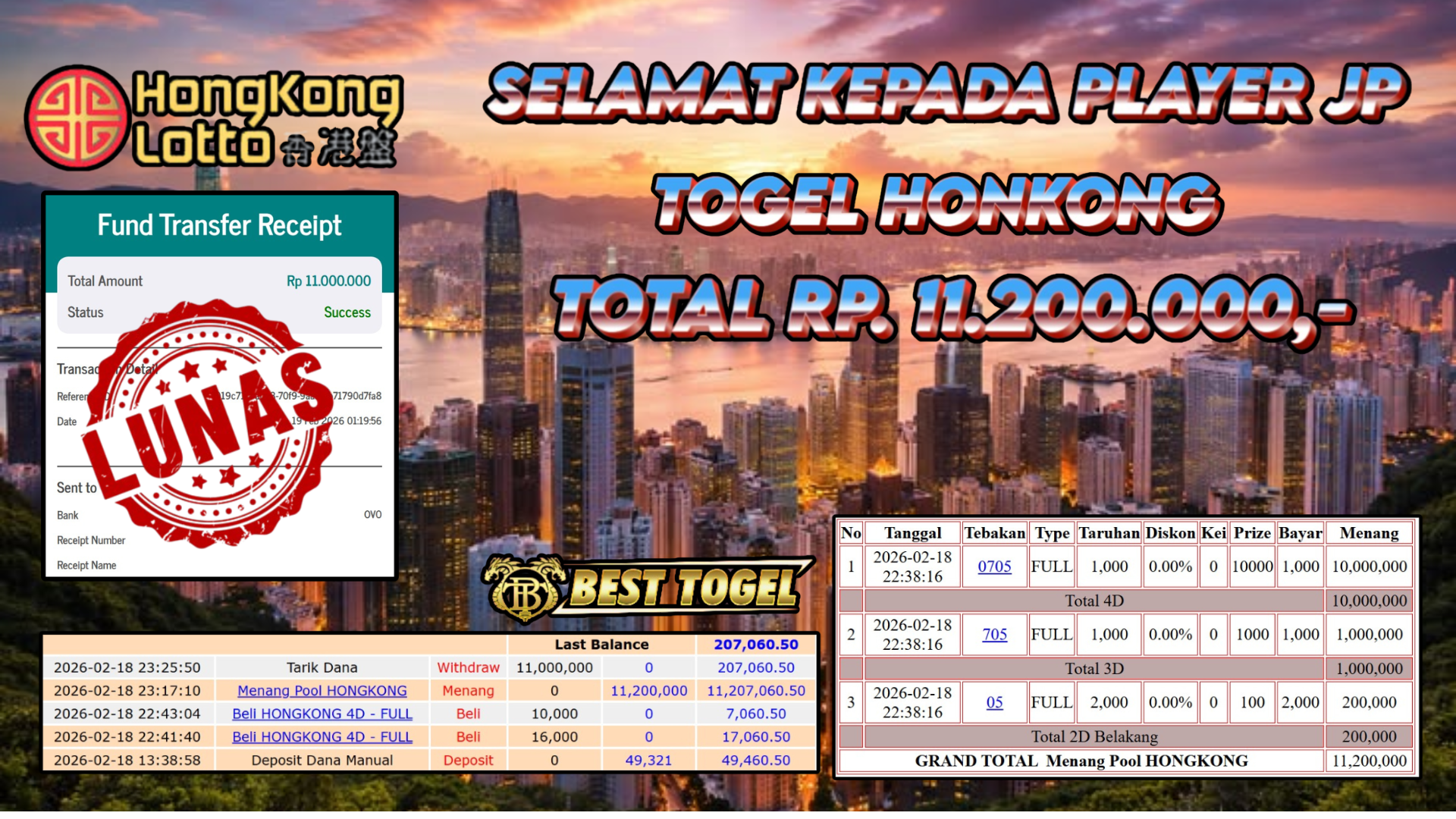 BUKTI JACKPOT TOGEL HONGKONG RP.11.200.000,- LUNAS
