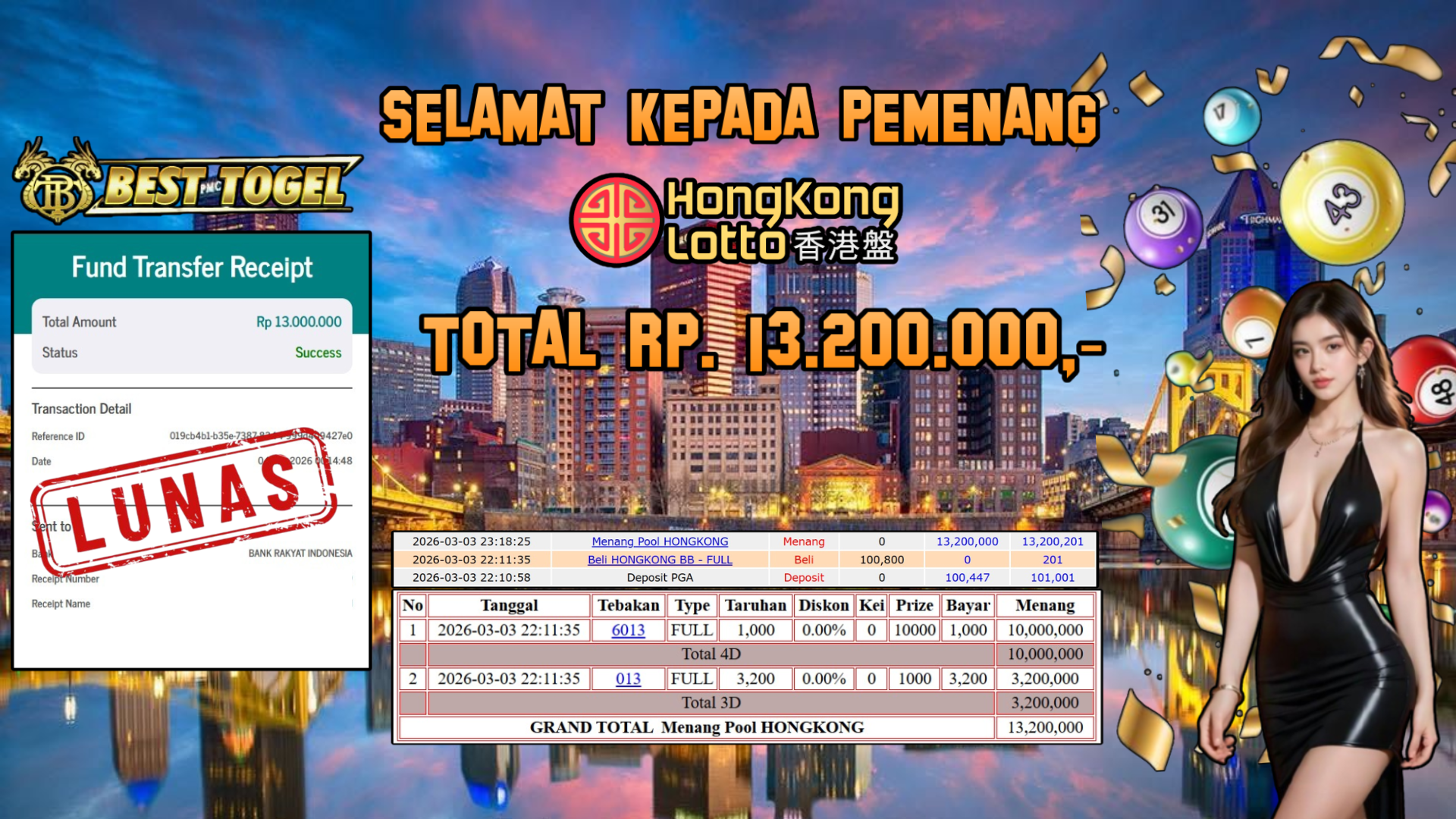 BUKTI JACKPOT TOGEL HONGKONG RP. 13.200.000,- LUNAS