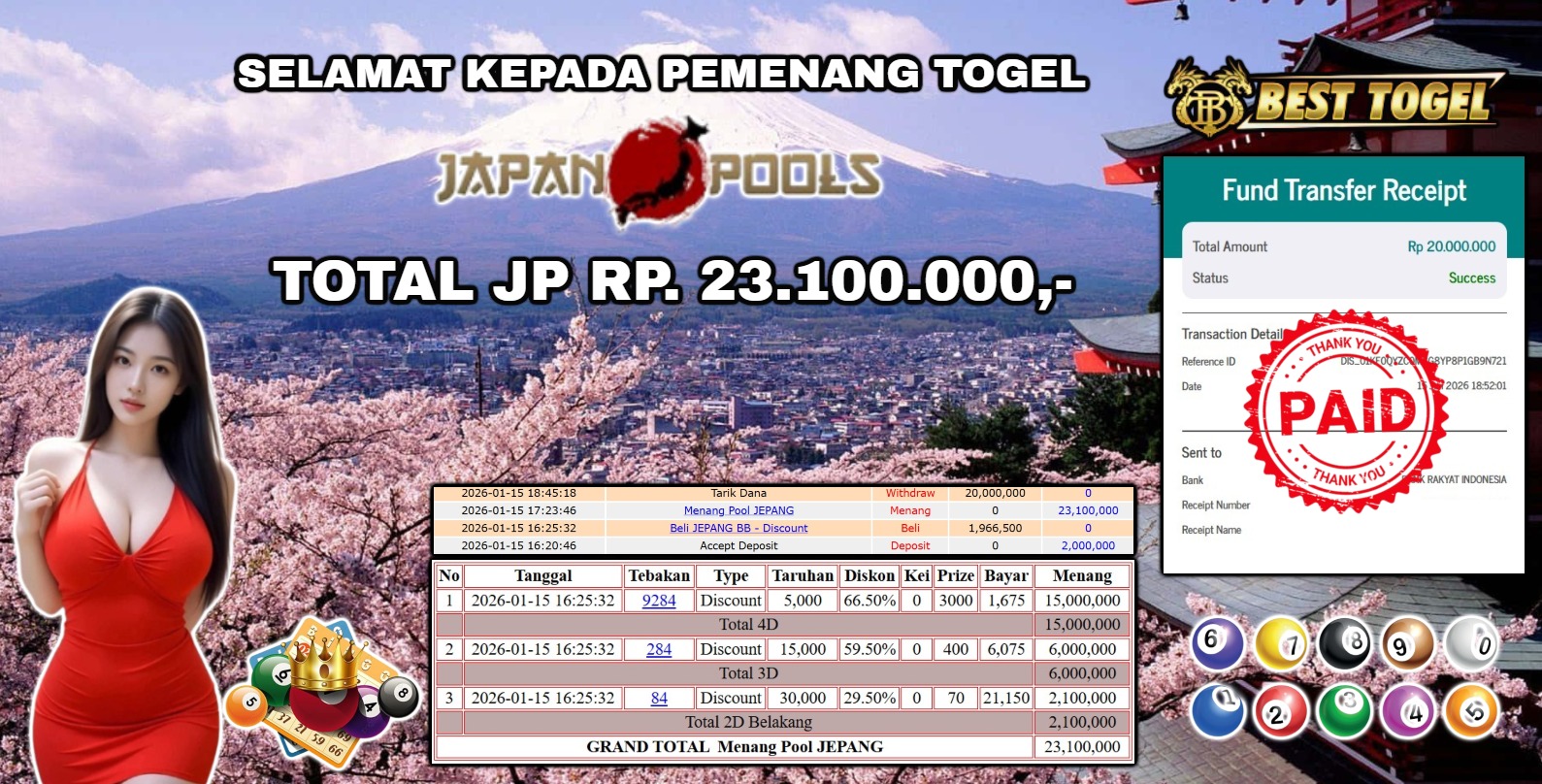 BUKTI JACKPOT TOGEL JEPANG RP.23.100.000,- LUNAS