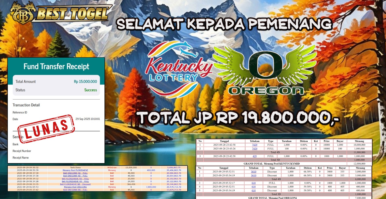 Kami mengucapakan banyak Terima Kasih Kepada pemenang karena sudah mempercayakan kami sebagai Bandar Tepercaya yang membayar semua kemenangan member hingga lunas.
