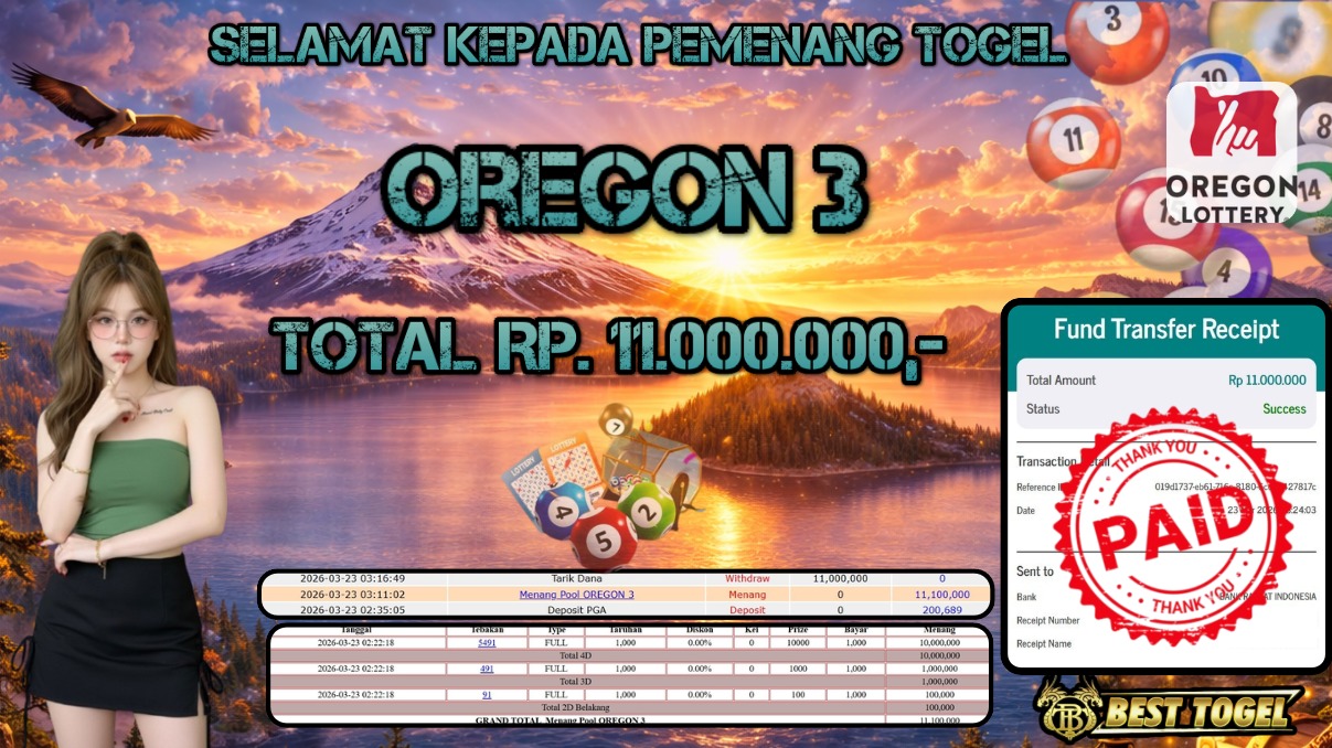 BUKTI JACKPOT TOGEL OREGON 3 RP.11.000.000,- LUNAS