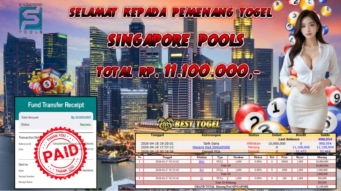 Selamat kepada User id : EKA*** Telah berhasil mendapatkan kemenangan besar pada permainanan TOGEL SINGAPORE POOLS dengan total kemenangan Sebesar Rp.11.100.000,- Setelah mengisi formulir withdraw dengan kurung waktu hanya 5 – 10 menit pihak BESTTOGEL sudah melakukan transfer kepada pemilik Userid dan dana sudah dapat di cairkan oleh pemenang. Bukti pembayaran yang kami berikan merupakan bukti pembayaran yang SAH / VALID yang langung di dapatkan melaui tanda transfer transaksi dari Bank yang di tuju.Kami mengucapakan banyak Terima Kasih Kepada pemenang karena sudah mempercayakan kami sebagai Bandar Tepercaya yang membayar semua kemenangan member