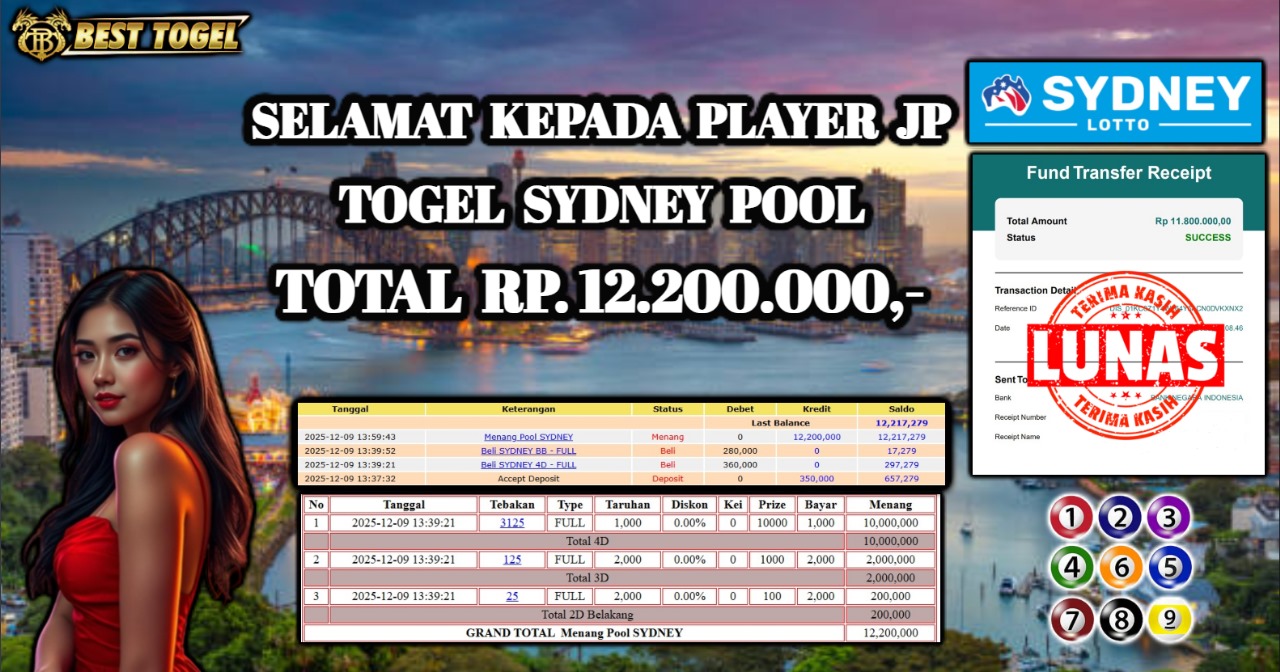 BUKTI JACKPOT TOGEL SYDNEY POOL RP.12.200.000,- LUNAS