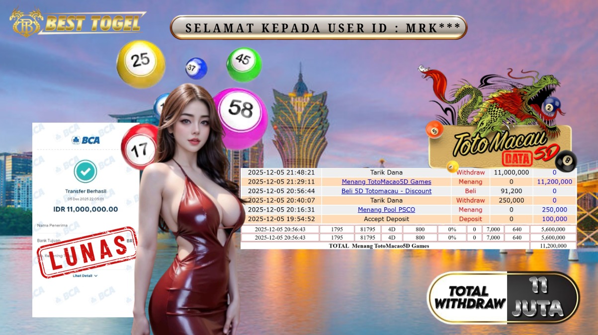 BUKTI JACKPOT TOGEL TOTO MACAO 5D Rp.11.200.000 ,- LUNAS