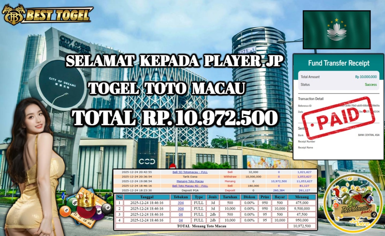 BUKTI JACKPOT TOGEL TOTO MACAU RP.10.972.000,- LUNAS