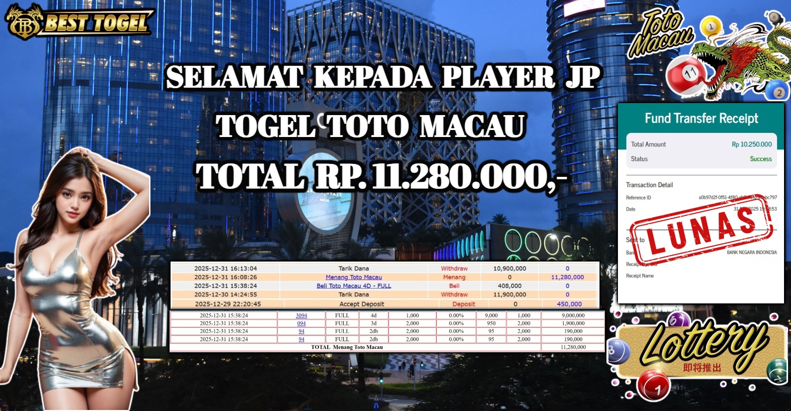 Selamat kepada User id : LIA****** Telah berhasil mendapatkan kemenangan besar pada permainan TOGEL TOTO MACAU dengan total kemenangan Sebesar Rp. 11.280.000,- Setelah mengisi formulir withdraw dengan kurung waktu hanya 5 – 10 menit pihak BESTTOGEL sudah melakukan transfer kepada pemilik Userid dan dana sudah dapat di cairkan oleh pemenang. Bukti pembayaran yang kami berikan merupakan bukti pembayaran yang SAH / VALID yang langung di dapatkan melaui tanda transfer transaksi dari Bank yang di tuju.