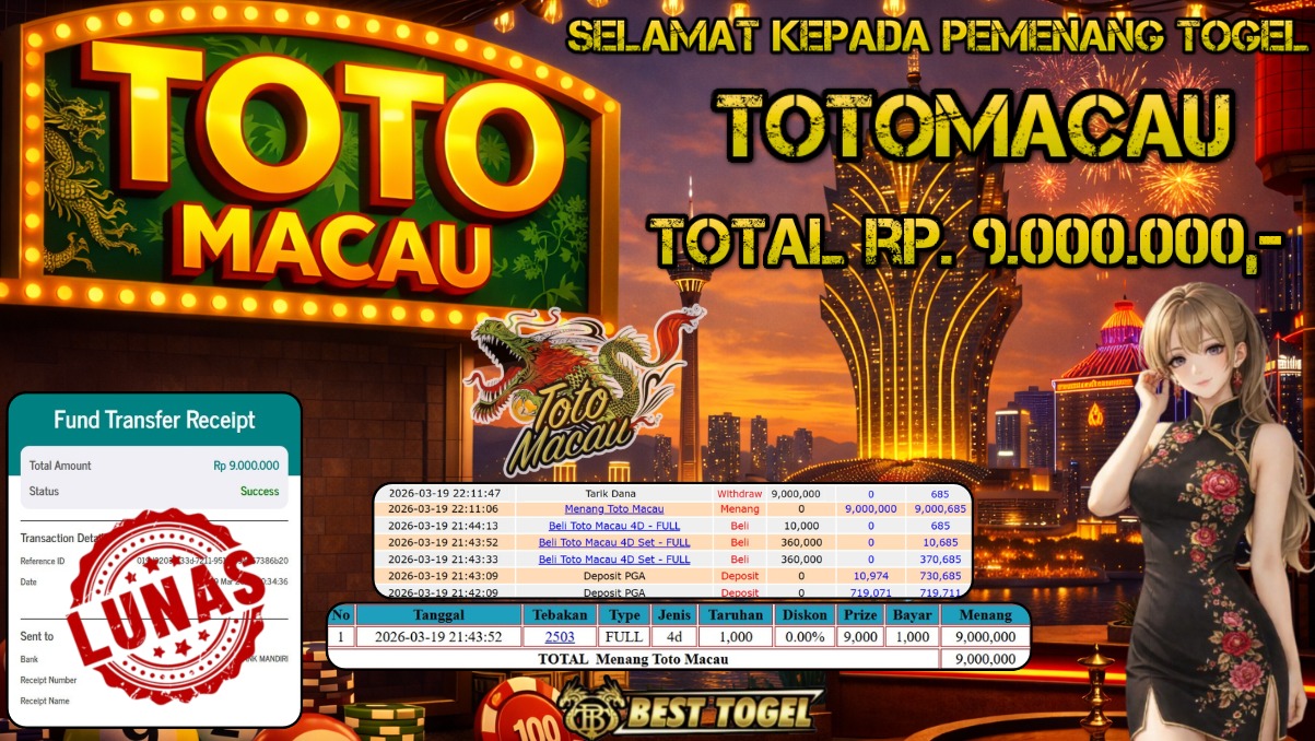 BUKTI JACKPOT TOGEL TOTO MACAU RP. 9.000.000,- LUNAS