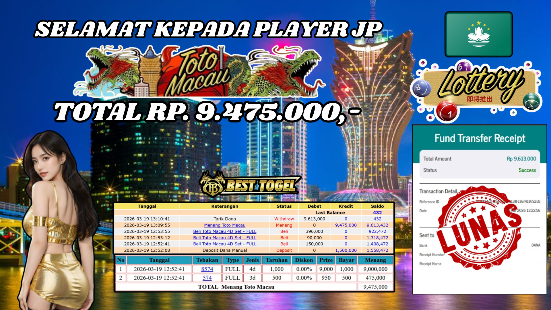 BUKTI JACKPOT TOGEL TOTO MACAU RP. 9.475.000,- LUNAS