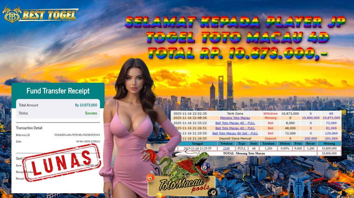 BUKTI JACKPOT TOGEL TOTOMACAU 4D Rp. 10.873.000,- LUNAS