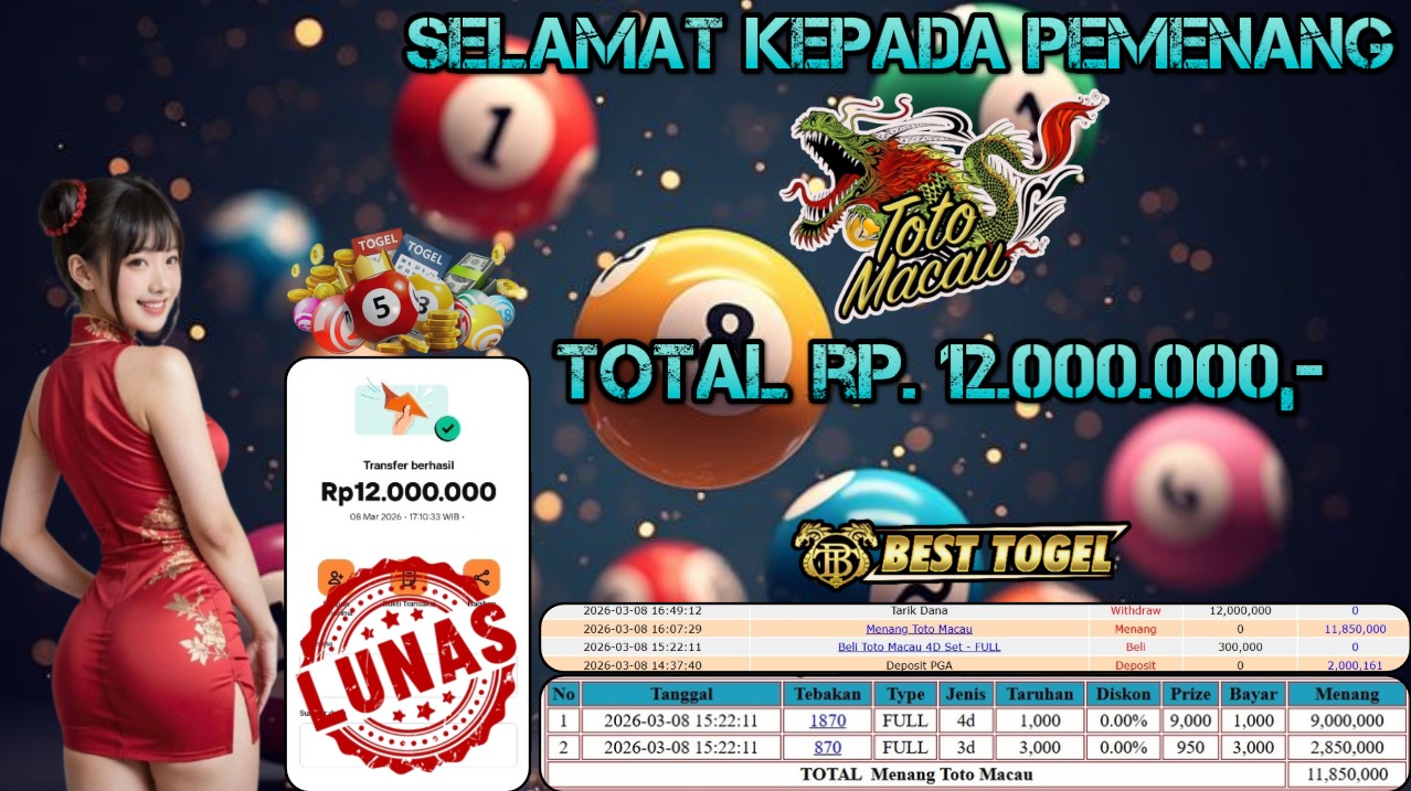 BUKTI JACKPOT TOGEL TOTOMACAU RP.12.000.000,- LUNAS